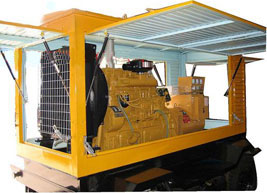 阎良柴油发电机组/移动柴油发电机组设计独具创新,机动性高、重心低、制动安全、制造精良、外形美观。 阎良拖车车架采用槽梁焊接成框架结构,节点选择合理、强度高、刚性好;同时装有钢板弹簧悬架结构;拖车采用高度可调节插销式牵引架,适用于各种高度牵引车;采用圆形钢管焊接直通式车轴,结构紧凑,安全可靠;车架四角设有机械式支撑装置,配备惯性行车制动、驻车制动和脱离应急制动,确保机组在各种状况下的安全;车架前端设有支撑轮,具备承受机组垂直载荷的功能的同时还具备导向功能;整车配备转向和刹车指示灯,同时装有尾灯标准插头